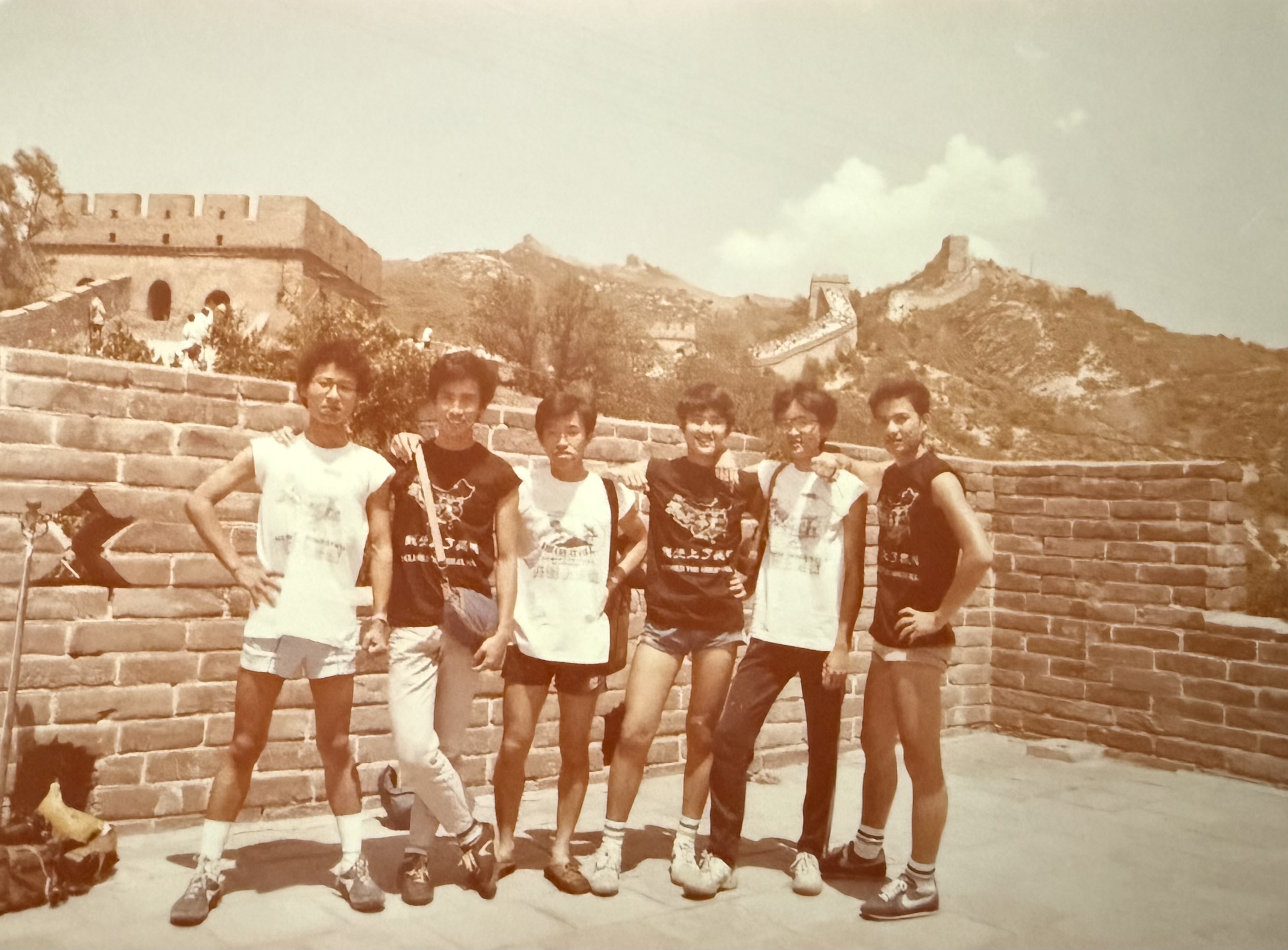 中五會考後 到中國大陸一個月的畢業旅行,從左起:嚴斌、郭志明、杜兆祥、劉凱恩、袁超奇、劉蘊傑 |