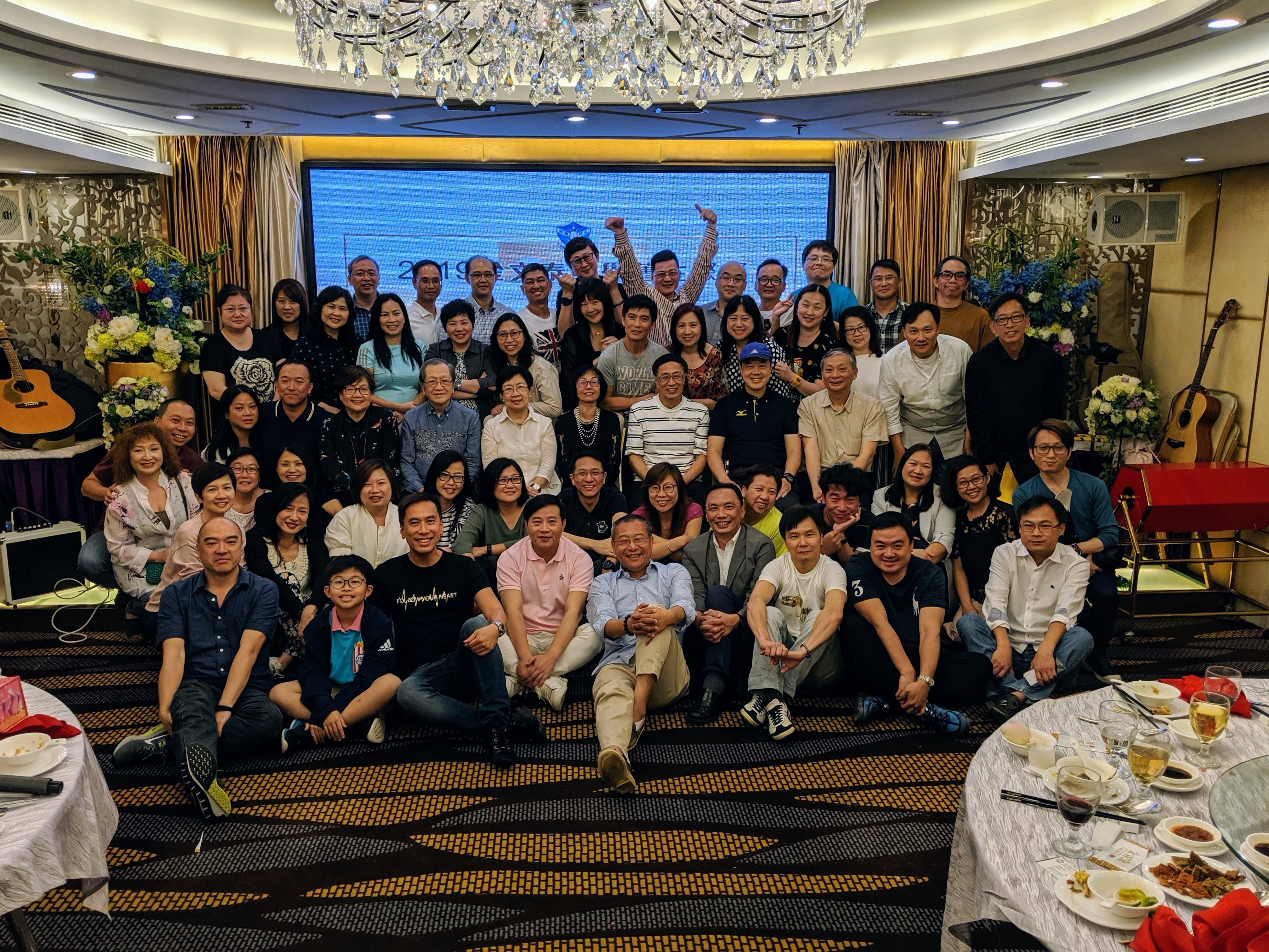 2019年1984屆35週年晚宴_ | 與師弟洪重穆 Ray自大學起成為好友,Ray太太也是金文泰校友(趙端嫺1987中五) | 現在有空會與高中好友一起彈結他唱歌,從左起:袁超奇、嚴斌、郭志明、杜兆祥、李文豪 |
