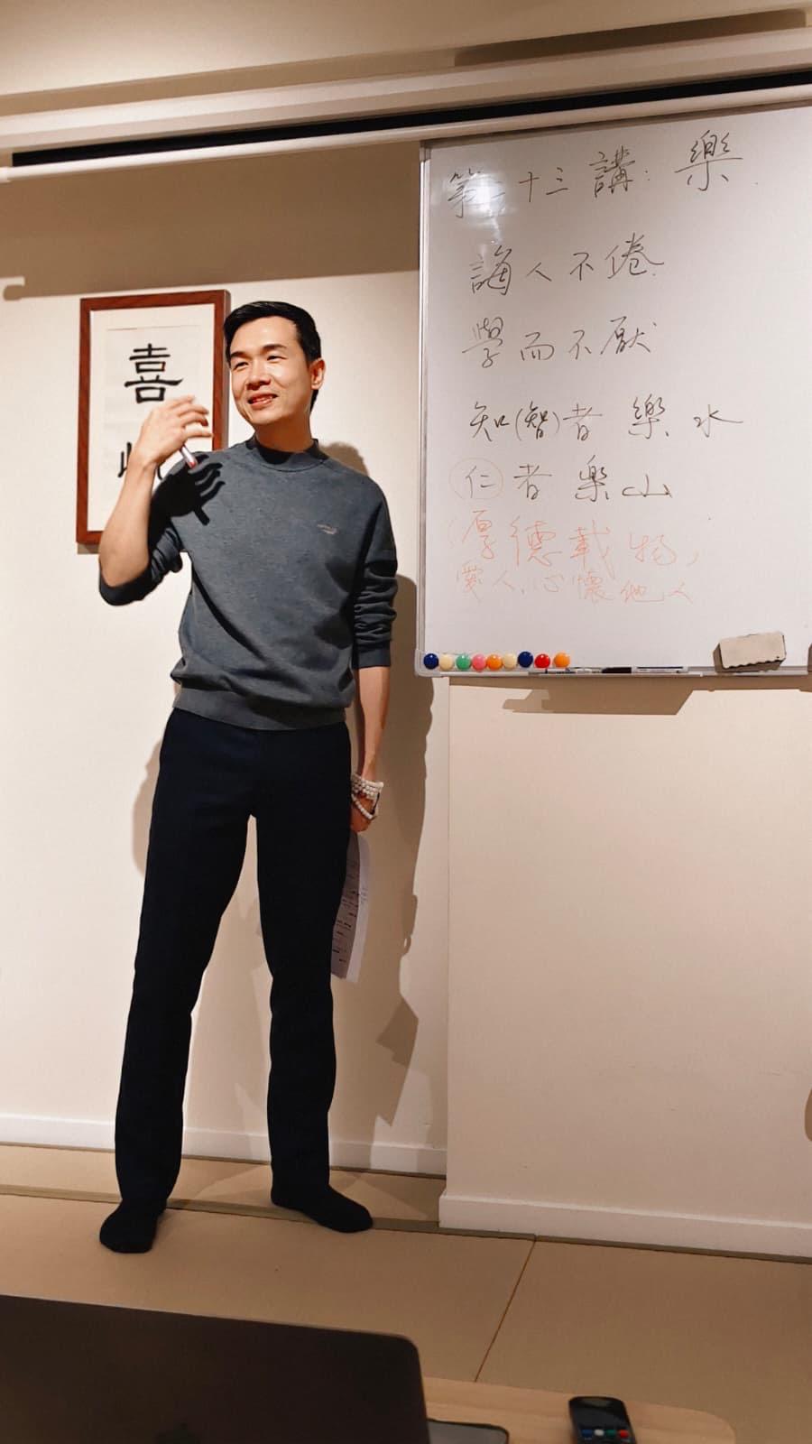 中文、文學、中國文化科給予我很大空間去思考生命,無論是文章、小說、儒家和道家經典,如〈師說〉、《聊齋誌異》、〈逍遙遊〉、〈論仁論君子〉,其中都是都人生思考與表達。藉着學習和討論,去建構我對生命的理解和確立我人生的方向。有幾位老師對我啟發甚大,包括初中時期的陳鳳蓮老師、施美芳老師,高中時期的陳慧芬老師、朱國治老師、李愛雲老師,感恩他們的啟迪、關愛和包容,讓中國文化進入我的生命。中學畢業,我進入嶺南大學中文系,繼續我對生命的思考。這時開始研讀《論語》,引起我興趣的是孔子老師說了一句:「吾道一以貫之」。《論語》是數百組獨立的句子和對話組成,其中並無系統性的框架,然而孔子老師卻說有一個核心能貫通所有內容。我感覺這個「一」可能解答我對生命的思考,於是用心鑽研,但到大學畢業,仍未讀通這個「一」。及後到中文大學繼續進修中文,同時學習《易經》、佛學。直至去年,終於讀通「吾道一以貫之」,得大喜悅,同時開辦了三十堂的《論語》課與大家分享這份喜悅。