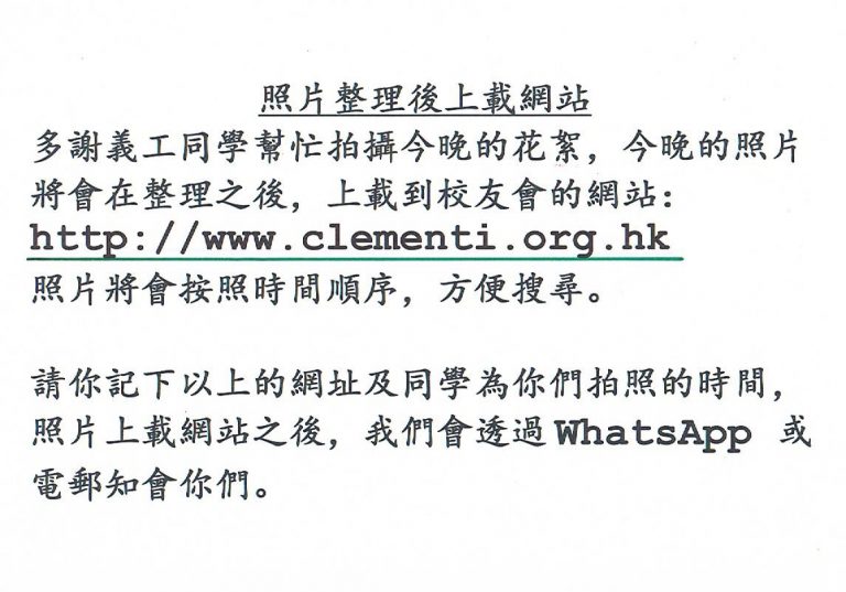 當晚的聚餐共開了十七圍,大家濟濟一堂,談笑甚歡。晚會並不會有華麗的舞台表演,亦不安排豐富的抽獎節目,更不是滿場奔跑的體力遊戲。會方提供了一個機會,予不常見的舊同學們,退休老師們,分享他們今日的生活點滴,和往日共同渡過的陳年往事。當晚的義工同學為我們拍攝了現場的點滴,供會友欣賞。