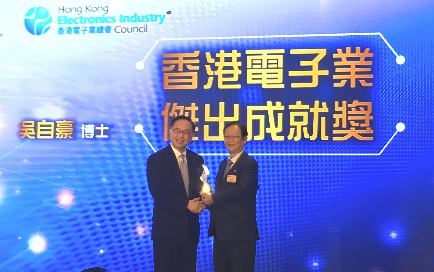 2018年 獲得了香港電子業總會頒發的 「香港電子業傑出成就獎」 此獎項旨在表彰他在電子產業領域的卓越貢獻 |