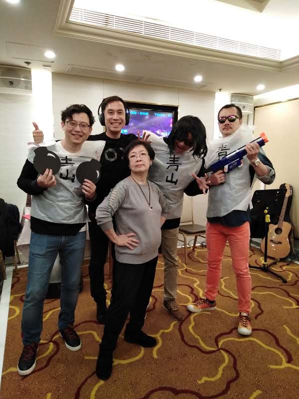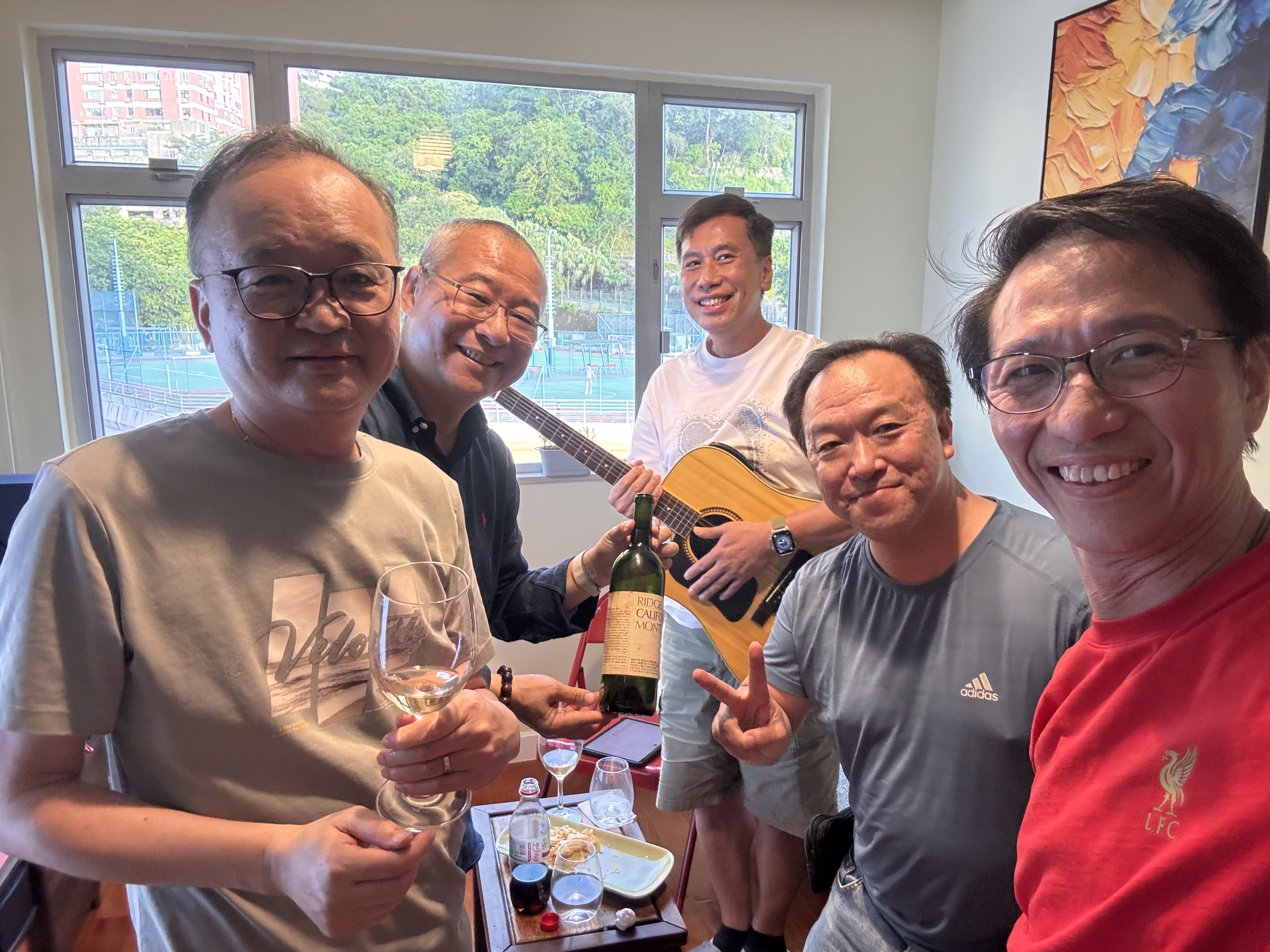 2019年1984屆35週年晚宴_ | 與師弟洪重穆 Ray自大學起成為好友,Ray太太也是金文泰校友(趙端嫺1987中五) | 現在有空會與高中好友一起彈結他唱歌,從左起:袁超奇、嚴斌、郭志明、杜兆祥、李文豪 |